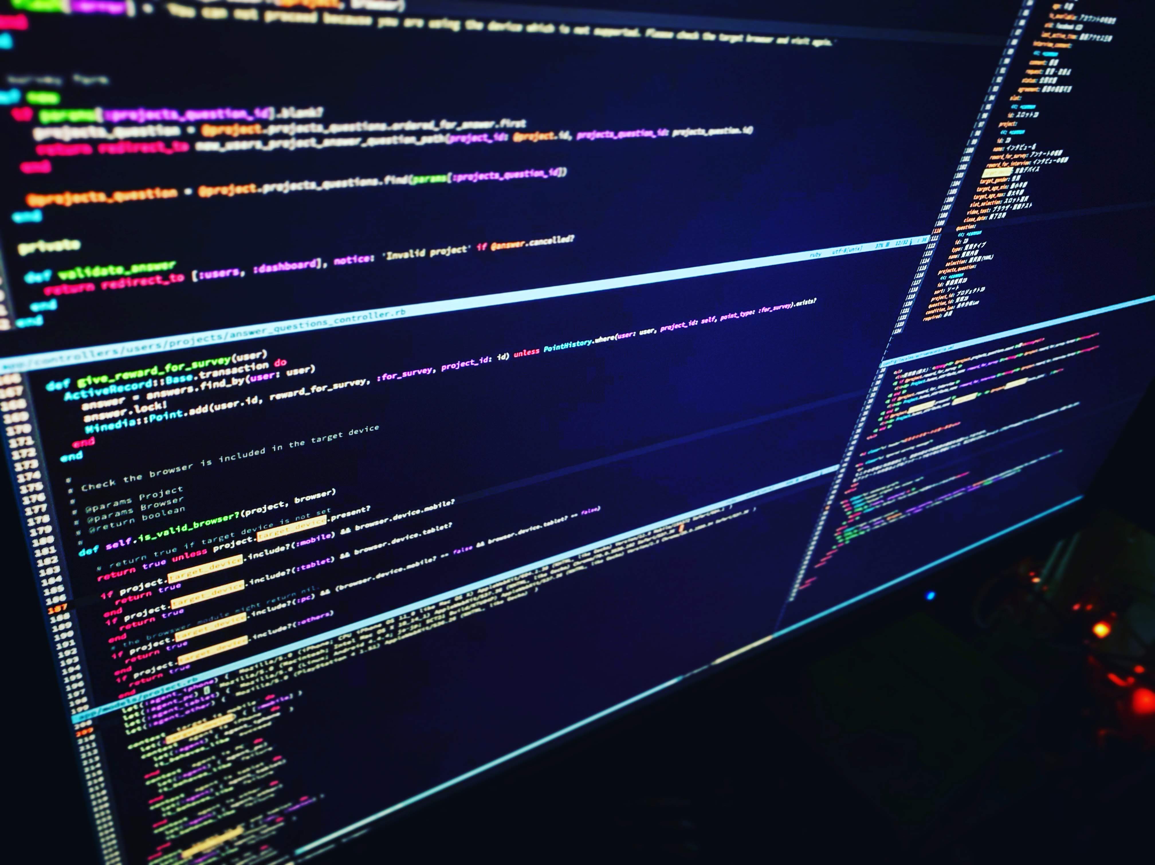 Colorful programming code filling the screen. Multiple windows are open, each displaying different code. The syntax highlighting is beautiful, telling a story of a developer's nighttime work. It conveys the quiet, focused time of being immersed in the world of programming.